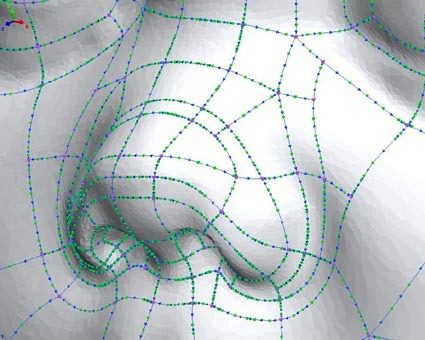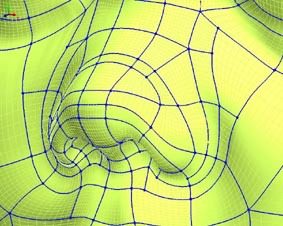 Once the curve network was in place, a patch network was automatically created showing a grid to emphasise any problems that the surface might have with the positioning of the curves.