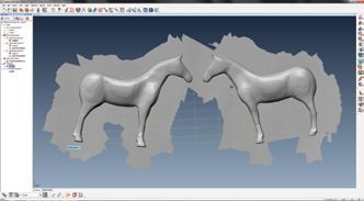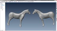 The below photographs demonstrate the polygon mesh appearing whilst the toy horse profile is being scanned.