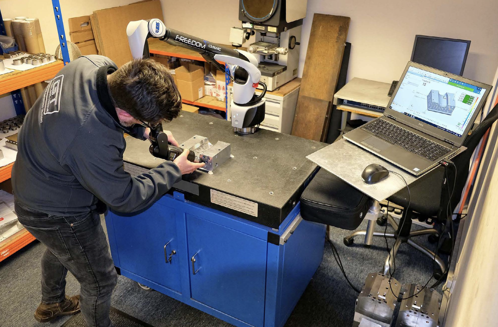 Although satisfactory, the procedure was time- consuming and risked the introduction of errors due to the necessity for arm relocation. So in May 2022, a FREEDOM Classis Scan portable arm with a reach of two metres was purchased from LK Metrology, Castle Donington. GT Tooling was introduced to this UK coordinate measuring machine (CMM) manufacturer by nearby Mech Metrology & Power Tools, which calibrates the toolmaker’s inspection equipment and supplies it with conventional metrology tools such as verniers and micrometers.