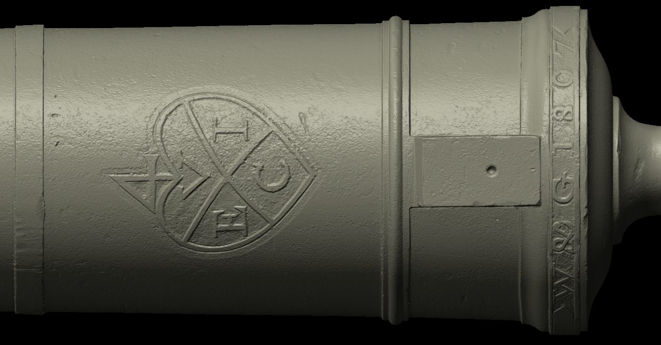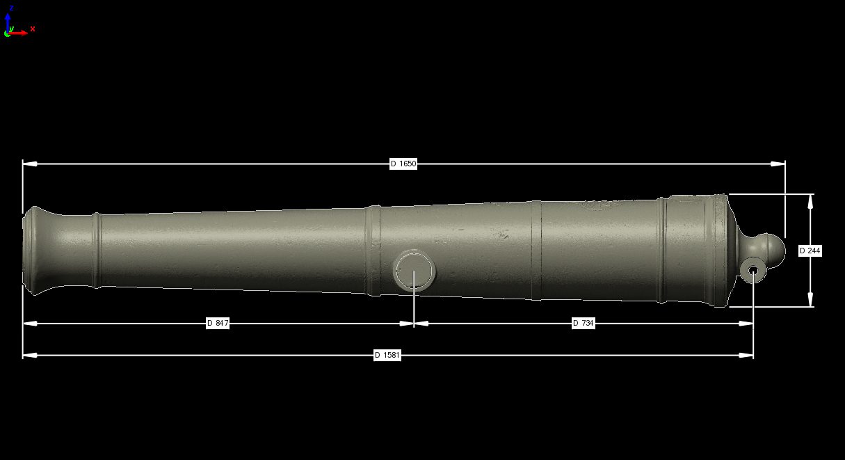 3D Scanners were asked to scan and produce a report on one of the eight identical bronze cannons. Archaeologists still often use hand drawing to record artefacts and David Knight wanted to explore the advantages of modern scanning techniques and demonstrate the advantages of this method using inspection software to create a visual report.