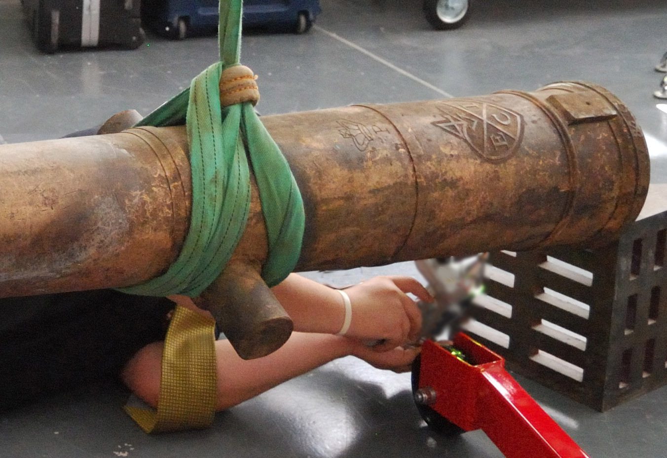 3D Scanners proceeded to scan the canon at their site in Coventry. It took half a day to scan the cannon using a 3d laser arm scanner. Particular attention was paid to the enscriptions, so that 3D Scanners achieved the best detail possible for the archaeologist report. The cannon also had to be lifted with a crane to allow them to achieve a full 360 degree scan. Due to the straps required to suspend the cannon on the crane, a few separate scans were needed to ensure full coverage. These would be best-fit aligned to approximately 50 microns during processing.