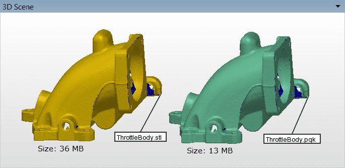 When measuring a large number of parts daily, with the requirement to save a copy of each scan to disk, you can end up encountering storage issues. You can reduce the size of your exported polygonal model files by up to 60% with InnovMetric’s PQK format. It lets you make important disk space savings while ensuring the quality of the exported file.