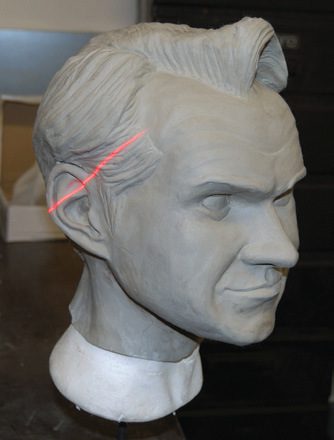 Michelle realised that the quickest way possible to create an up-scaled version of something, was to 3D scan the object and have a CNC milled part created from the data. Unfortunately, the giant head was being made as a surprise to Jimmy Carr, so his head could not be scanned. This delayed the project a little, as it meant that Michelle had to sculpt Jimmy's head out of clay from two photographs. 3D Scanners UK then scanned the 'drying out' clay model, and set to work processing the data straight way.