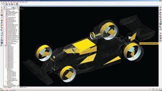 A full scale clay was created from the model and the original chassis in order to produce a fibreglass body. An aluminium front and rear wing was produced from the PolyWorks cross-sectional data. The project was then complete.